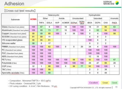 AOMA™ is a low-viscosity, highly reactive cyclopolymerizable monomer. It shows excellent dilutability and rapid UV curability.