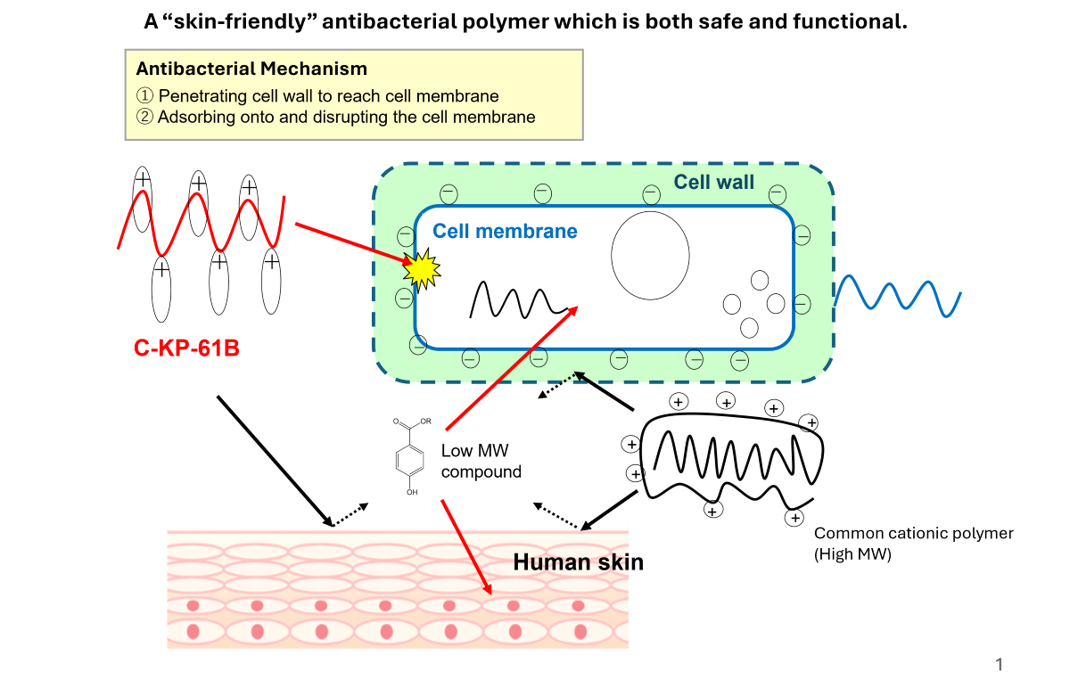 | Features | This is a “skin-friendly” polymer that combines both safety and functionality. It is a cationic polymer that exhibits antibacterial properties, anti-coronavirus activity, anti-pollution effects, and moisturizing benefits. |