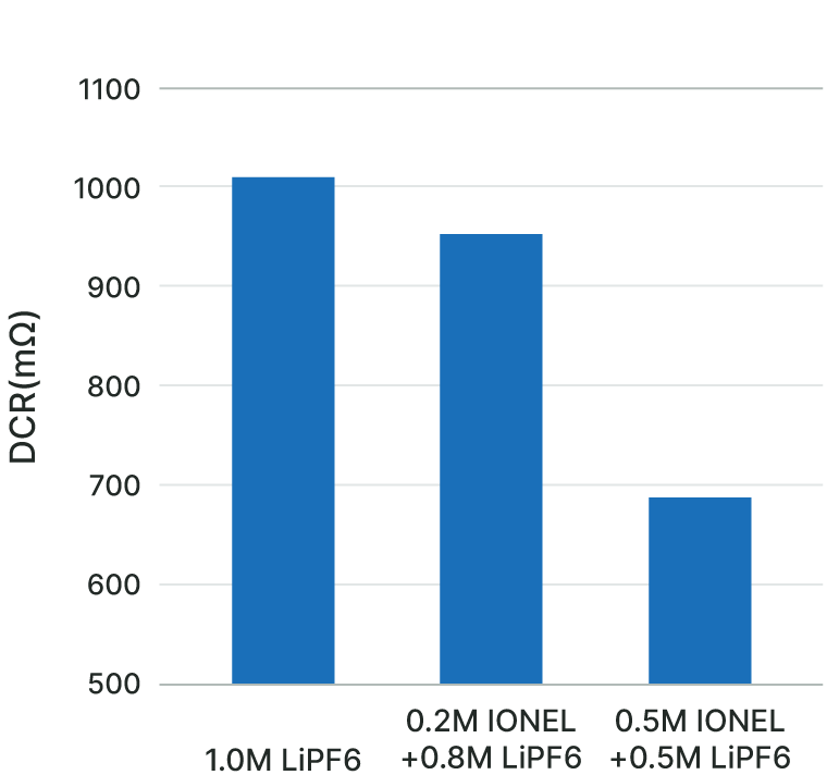 Various studies have been conducted on IONEL™ as the main electrolyte salt for lithium-ion batteries, and the following improvements have been confirmed.