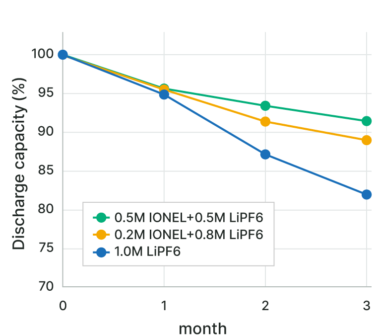 IONEL™ is highly pure, has few solvents and by-products, and exhibits stable electrochemical properties.