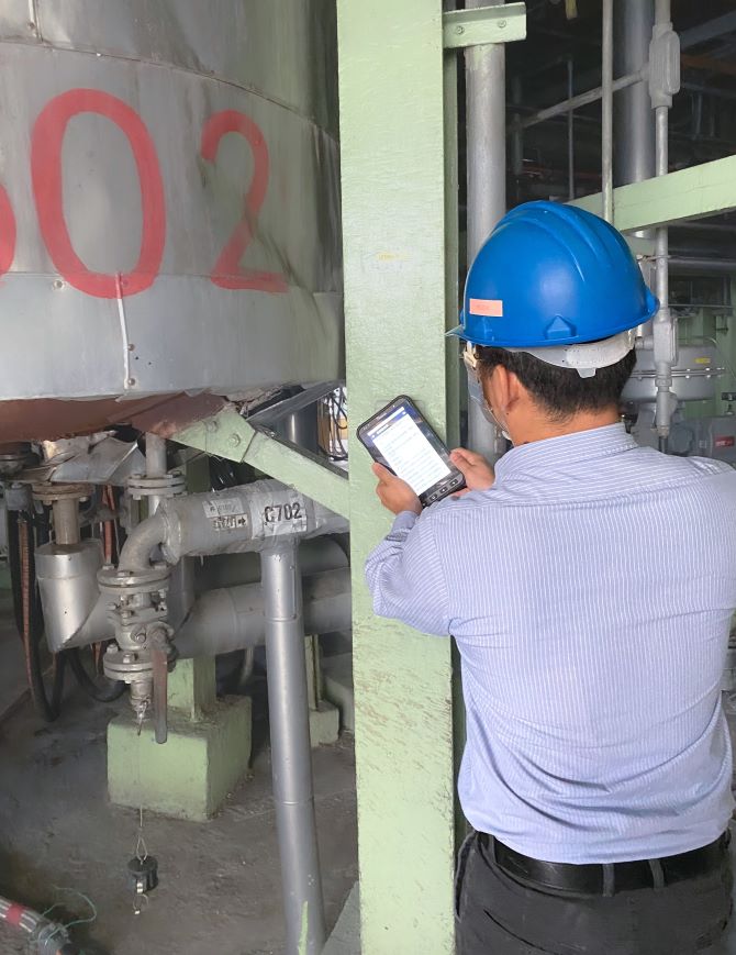 As part of our process safety and disaster prevention initiatives in FY2024, our company has introduced a smart patrol inspection system. By adopting a scanning method using dedicated equipment, inspection accuracy has significantly improved. Additionally, automation has enhanced work efficiency, and features such as task management, history search, and approval functions have streamlined management. The shift to paperless operations has also reduced environmental impact.
