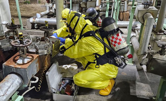 As part of process safety and disaster prevention initiatives in FY2024, our company conducted three emergency drills. In June and November, we carried out daytime emergency drills in collaboration with the local fire department and first-aid center, as we do every year. Additionally, to enhance our emergency response capabilities, we conducted a nighttime emergency drill for the first time in October.