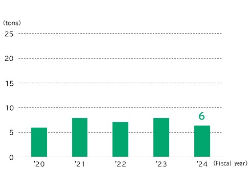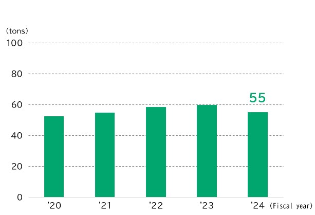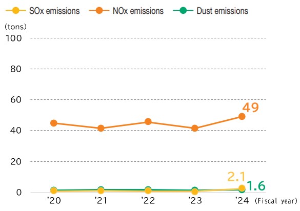 In environmental protection, there was one environmental issue (marine leakage). As countermeasures, we reviewed operation procedures and strengthened equipment to prevent recurrence. We also implemented energy-saving measures, such as introducing an advanced process control system to manufacturing equipment to predict fluctuations in each process and provide simultaneous control. In response to the PRTR Law, we continued efforts to reduce emissions of substances such as boron and ethylene oxide.