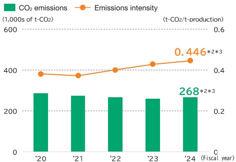 *3 Due to the revision of the Act on Promotion of Global Warming Countermeasures (Global Warming Countermeasures Act), the calculation method has been revised from the fiscal 2023 results.