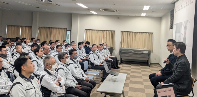 The General Affairs Department at the Himeji Plant is working to create an environment where everyone can work comfortably with the D&I*1 Promotion Team. As part of this effort, in FY2024, we conducted a ‘Women’s Health Seminar’ focusing on health issues specific to women, targeting all employees at the Himeji Plant.