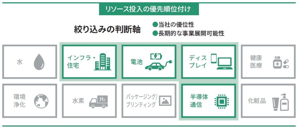 前中計の反省を踏まえ、新中計では注力する成長事業領域を「スペシャリティ」「エレクトロニクス」「コンストラクション」「エネルギー(電池)」の4つに絞り込みました。先に述べたように、これらの分野では“仕込み”をして生産能力を高めつつあります。さらに、100人以上の人員も新たに投入しました。成功の確度はこれまで以上に上がっていると思います。