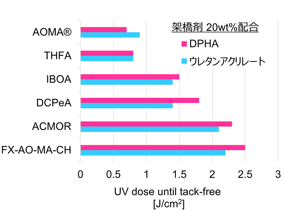 THFA:テトラヒドロフルフリルアクリレート、IBOA:イソボルニルアクリレート