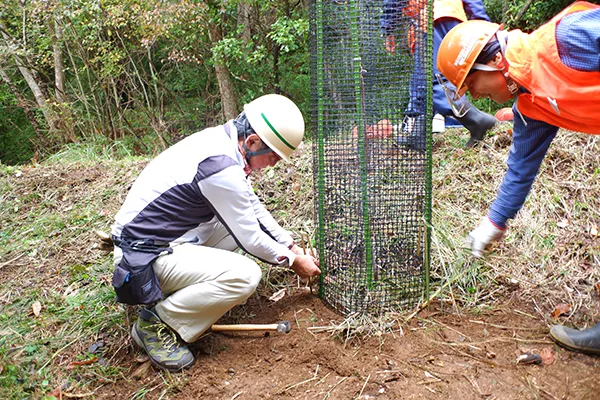 毎年、春と秋に社員がボランティアで枝打ち作業等を行い、自然環境の保護・再生活動に取り組んでいます。