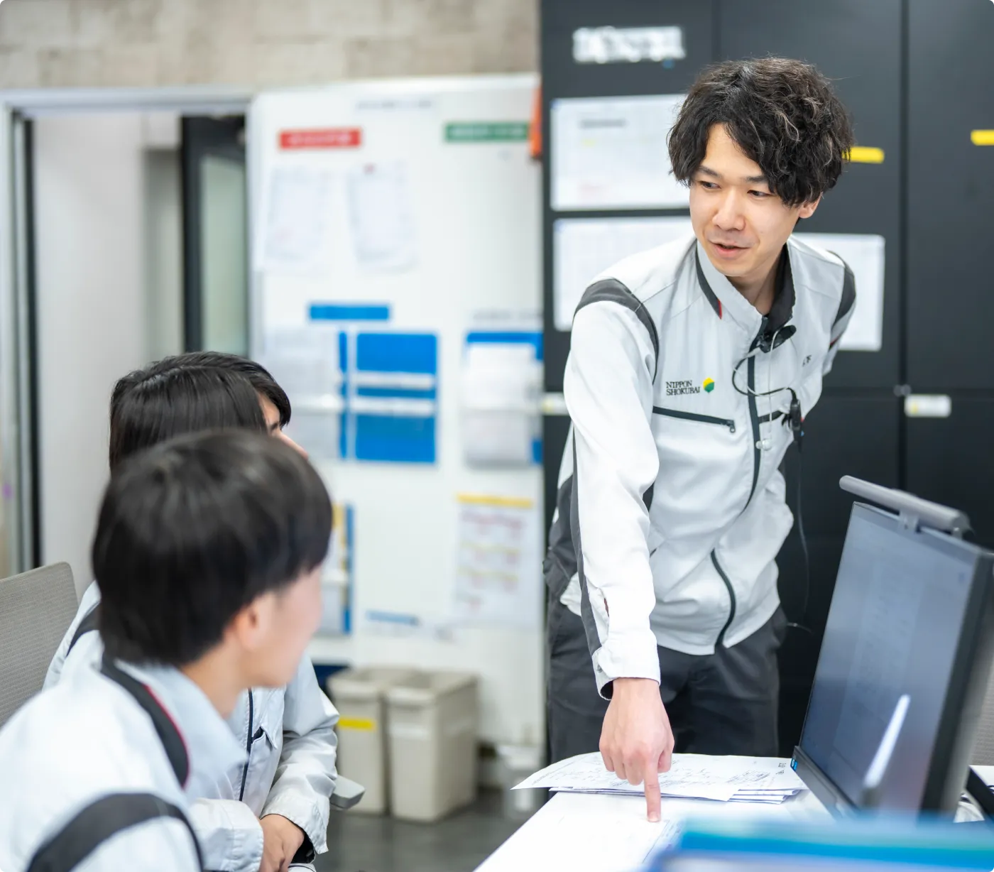 入社して2年目くらいまで、設備の配置や生産工程、作業方法など覚えることが非常に多くて苦労した覚えがあります。それを乗り越えた方法は、まずは上司や先輩社員に教えてもらい、覚えた仕事を一つひとつ率先して行っていったこと。そうすることで自分は教えれば頑張って仕事する人間だと周りに感じてもらえるようになり、より親身な教えを得ることができるようになりました。また、少し業務に慣れてきた後は、社内にストックされている資料や手順書を調べたり、作業の空いている時間に現場へ出向いて設備と配置図面を見比べたりしながら自分で勉強。これらを繰り返すことで、たくさんの業務知識が徐々に身に付いていきました。
