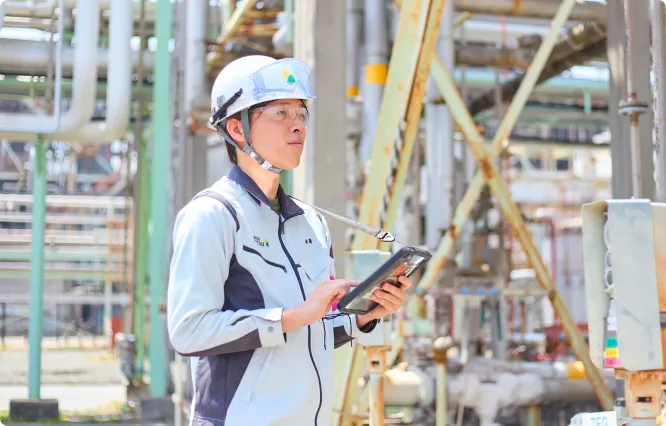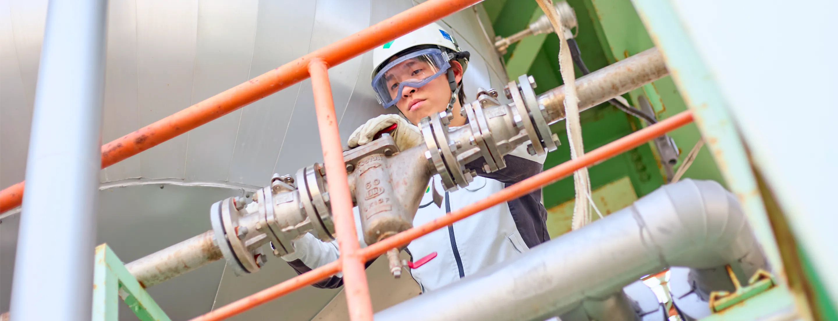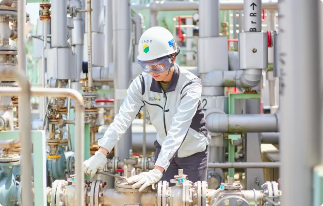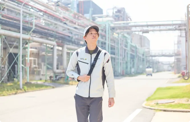 製造職は、化学素材をつくり出すプラントの操作・監視・点検業務の他、原料の準備や分析業務などを行い、品質の良い素材を安全に生産する現場を支える重要な役割を担います。またプラント建設業務にも関わる機会もあります。