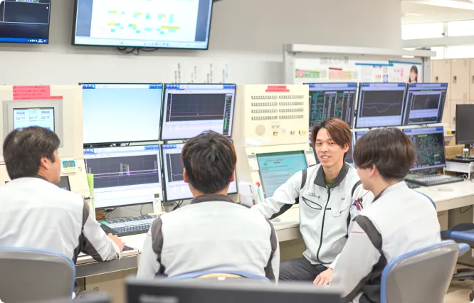 管制室でプラントが安定稼働しているか監視を行います。また、プラントの現場にいる他係員からの連絡を受けて、設備の停止・再稼働作業を行っていきます。