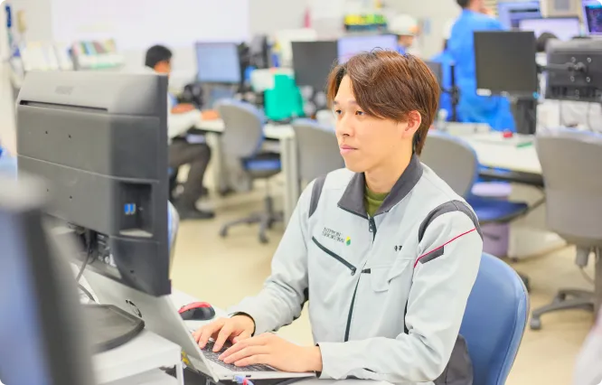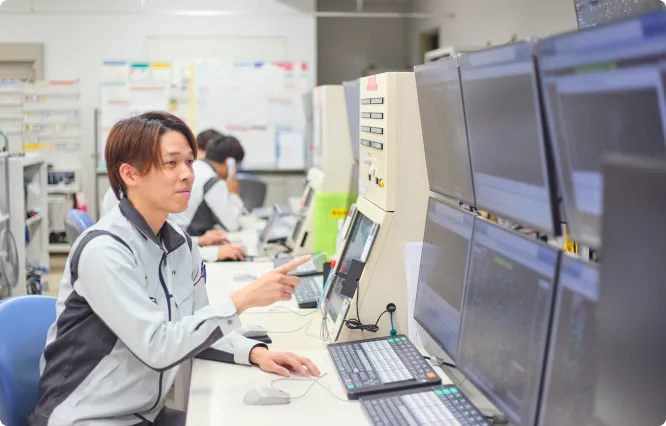 プラント全体をモニターで監視し、設定変更や機器稼働を遠隔操作にて行う業務。