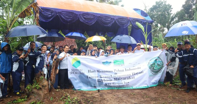 当社は、植林プログラムの1周年とインドネシア植樹の日を祝うため、2024年12月4日にシシト生物多様性公園で生物多様性のイベントを開催しました。多くの関係者が招待され、盛況なイベントとなりました。招待客には、リコンバシ・ブミ、バンテン環境サービス長、セラン県環境サービス長、チレゴン市環境サービス長、チオマス小区長、シシト村長、ハラパン・ジャヤ森林農民グループ、チオマス第2国立中学校の学生代表、地元のコミュニティ、そして当社の従業員代表が含まれていました。