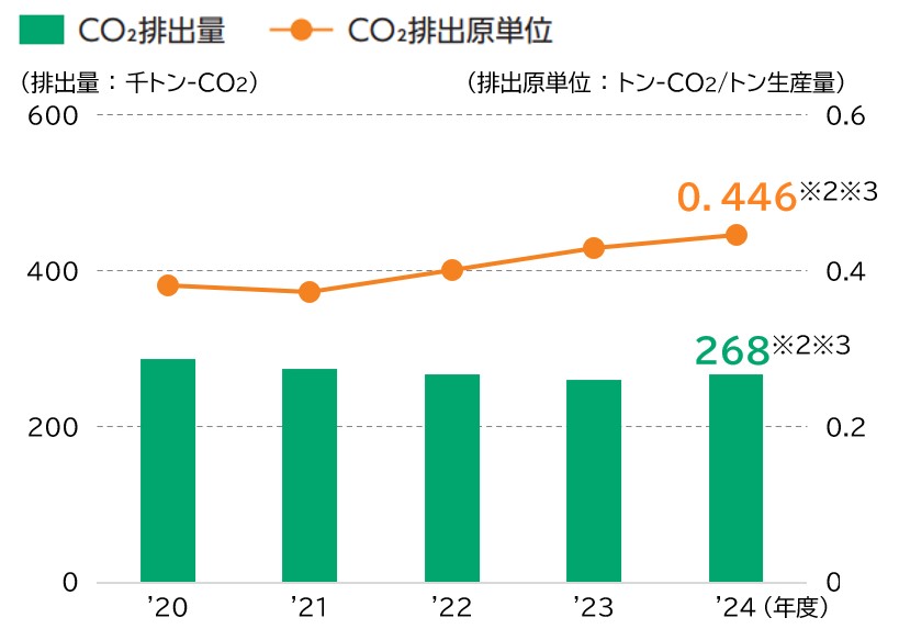 ※3 「地球温暖化対策の推進に関する法律(温対法)」の改正に伴い、2023年度実績から算定方法を見直しました。