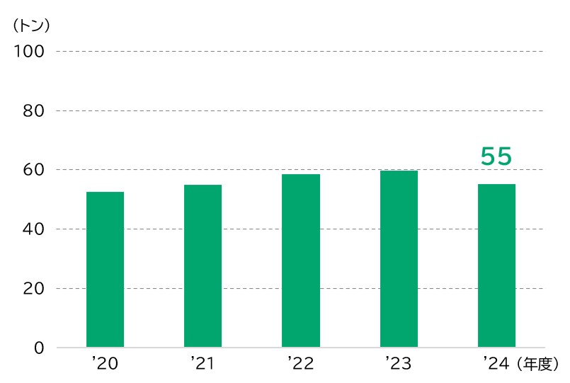 川崎製造所では、DXを活用した生産性向上や省エネルギー化の取り組みとして、浮島工場に導入した高度制御システムの千鳥工場への展開と、生産量に応じた製造装置の運転パターン最適化を行いました。これにより2024年度は約3,200kL(原油換算)の省エネルギー化を達成し、CO2排出量も約7,500トン削減することができました。また、生産性が向上し、変動費を削減することができました。