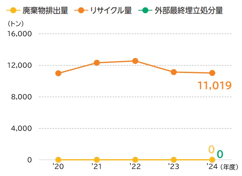 廃棄物排出量、リサイクル量、外部最終埋立処分量の推移